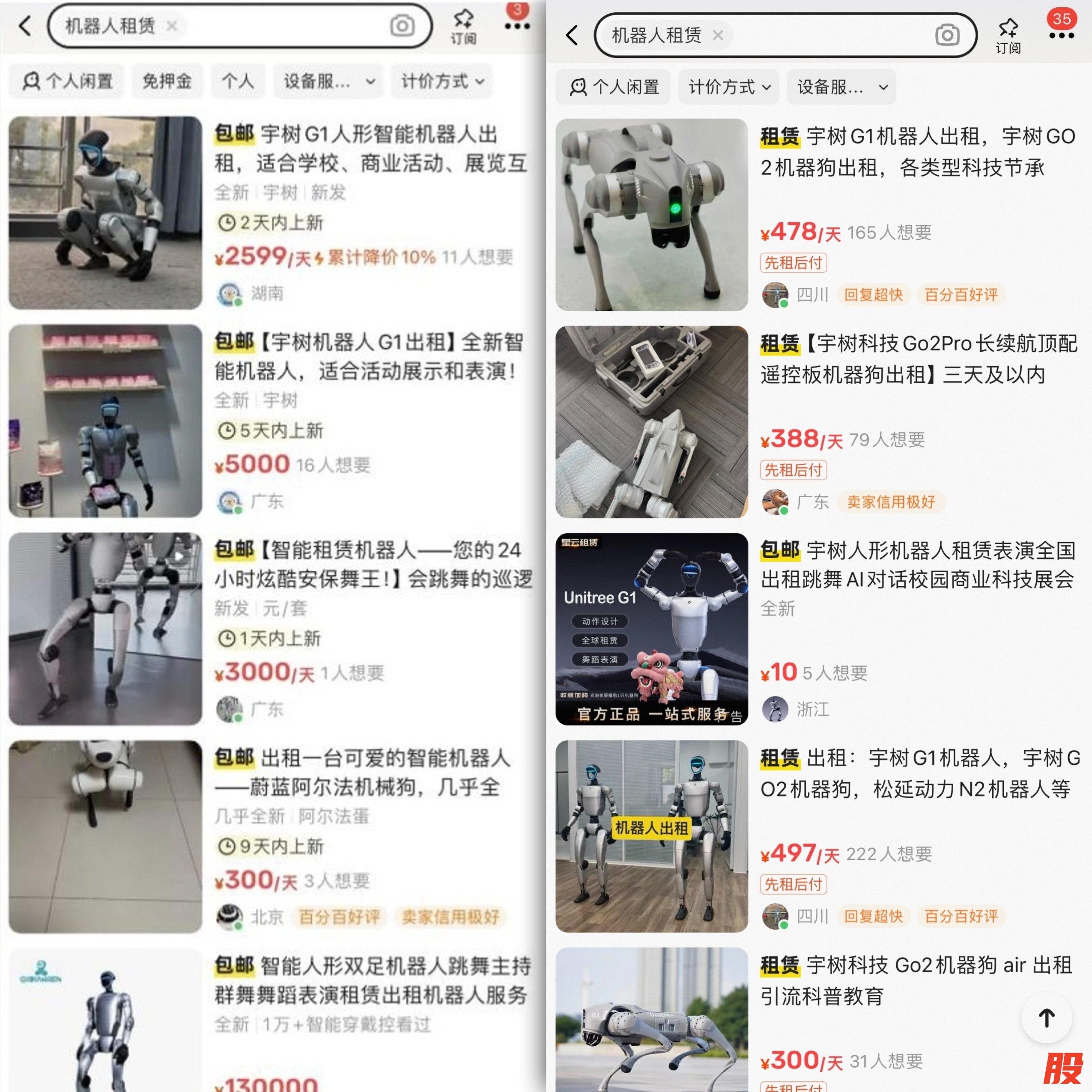 在今年年初,据《科创板日报》记者调查,宇树科技旗下的机器狗(含Air版与Pro版)每日租赁价格普遍介于1500元至2800元之间;而人形机器人的租金则更高,“日薪”最高可达万元水平。